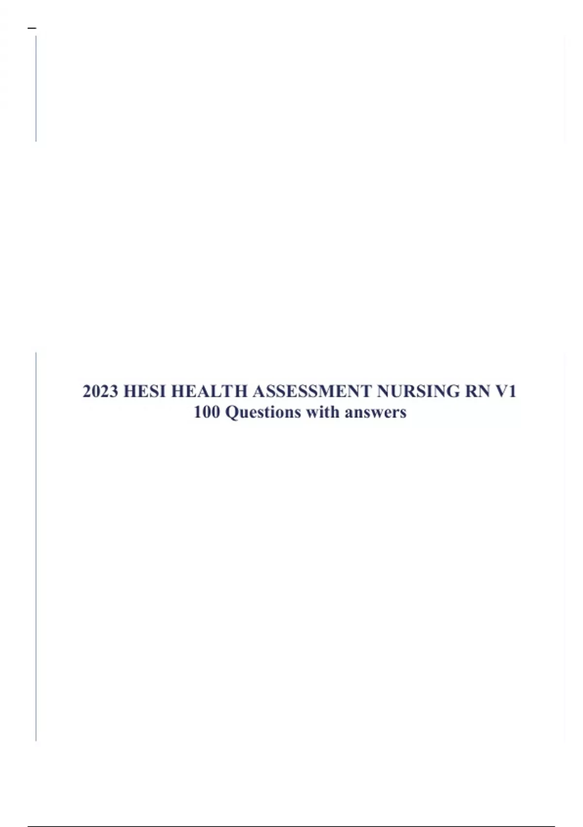 2023 HESI HEALTH ASSESSMENT NURSING RN V1 100 Questions with answers
