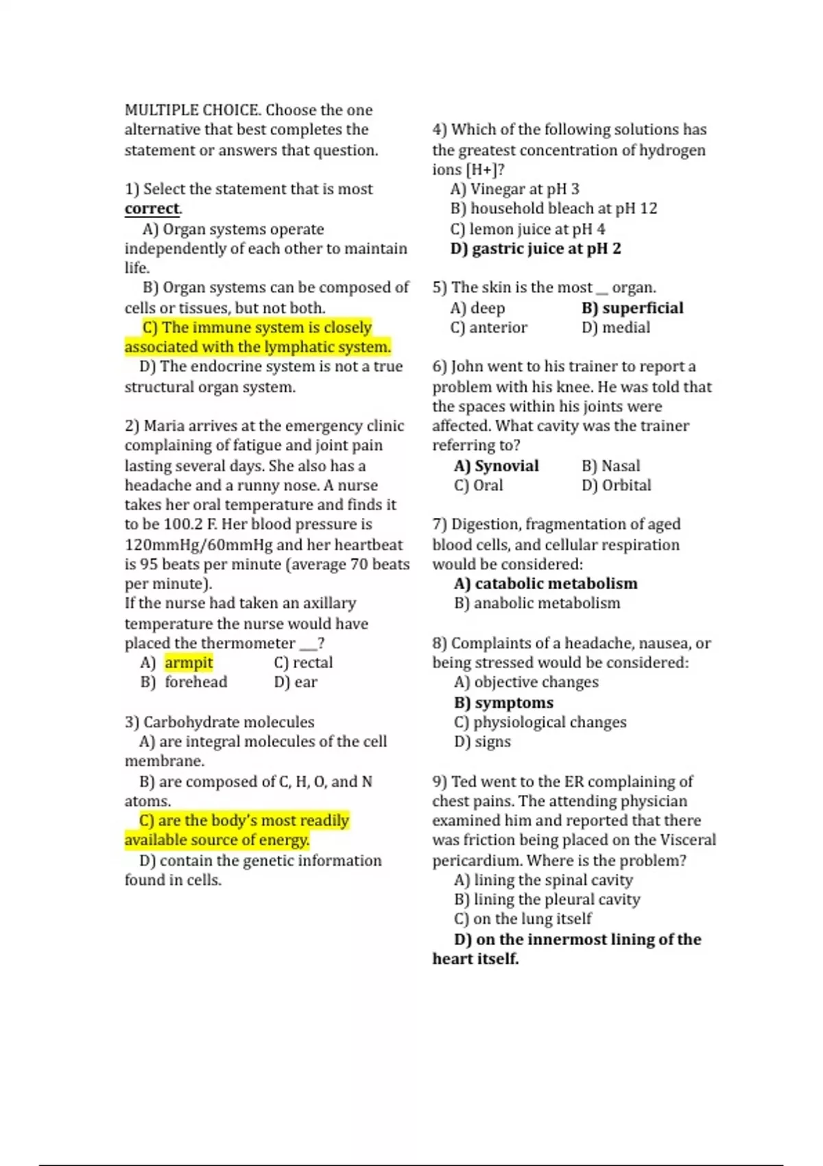 Practice notes/tests for class