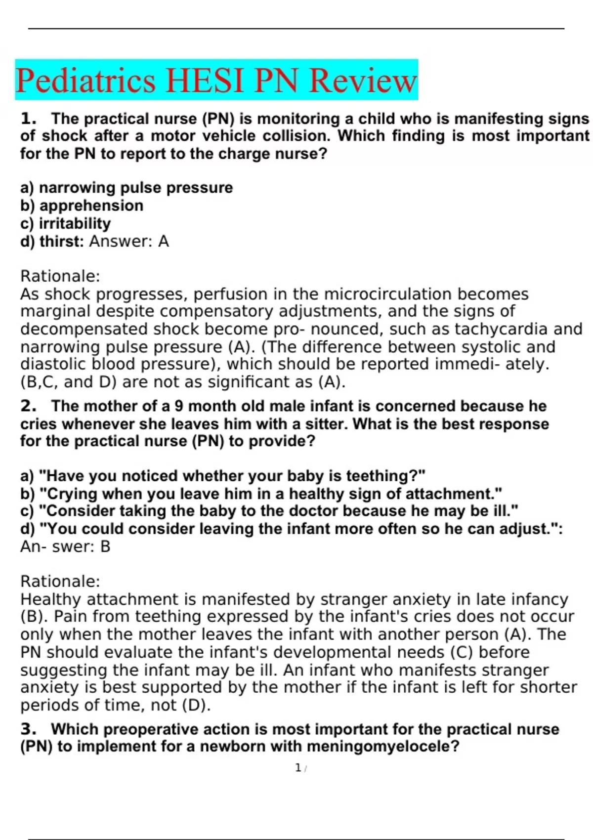 HESI Pediatrics / Pediatrics HESI PN Review 2022 EXAM A GRADE