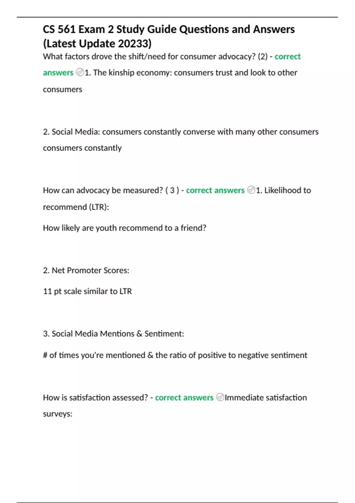CS 561 Exam 2 Study Guide Questions and Answers (Latest Update 20233)