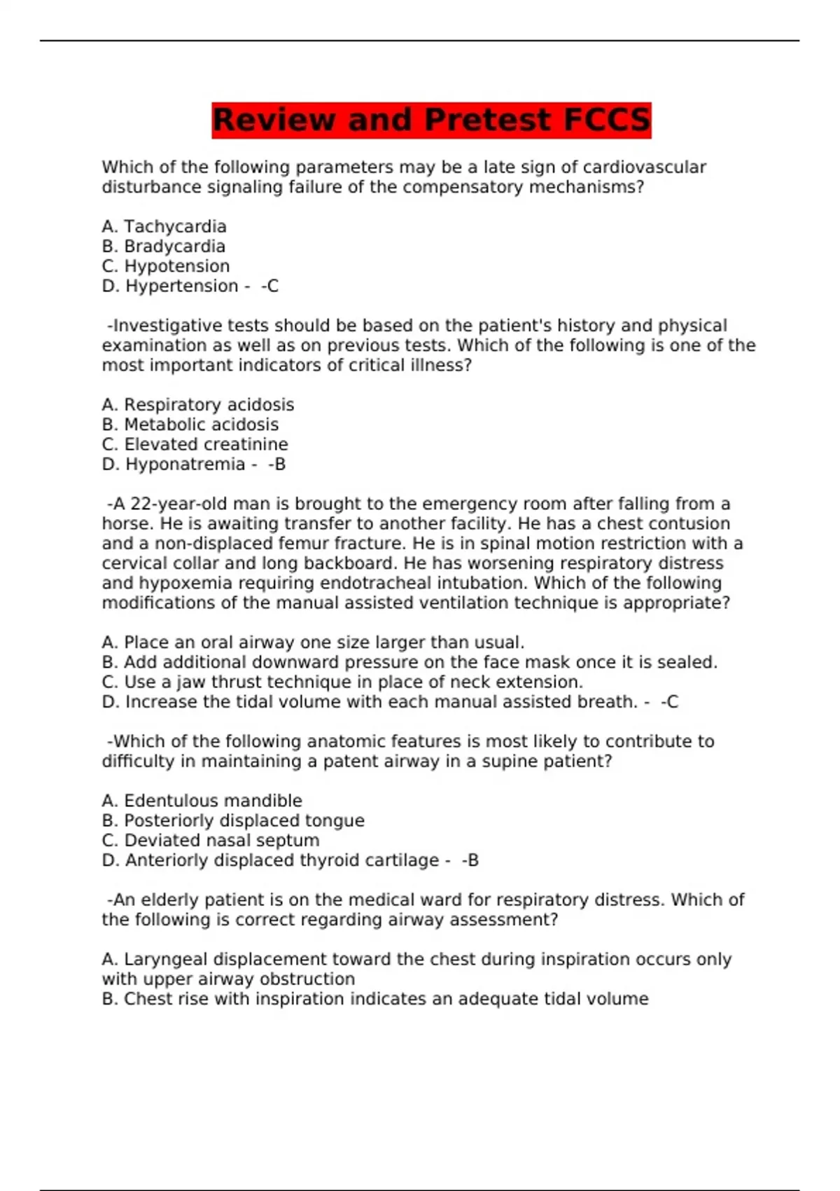 Review and Pretest FCCS