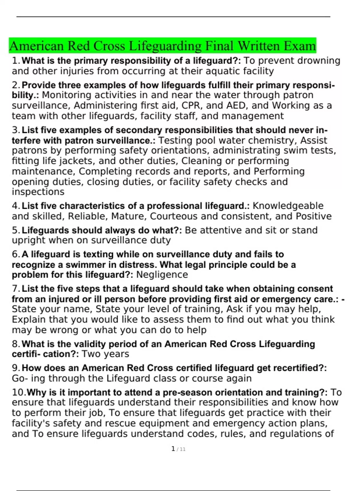 American Red Cross Lifeguarding Final Written Exam 2022/2023 With all Complete Solution