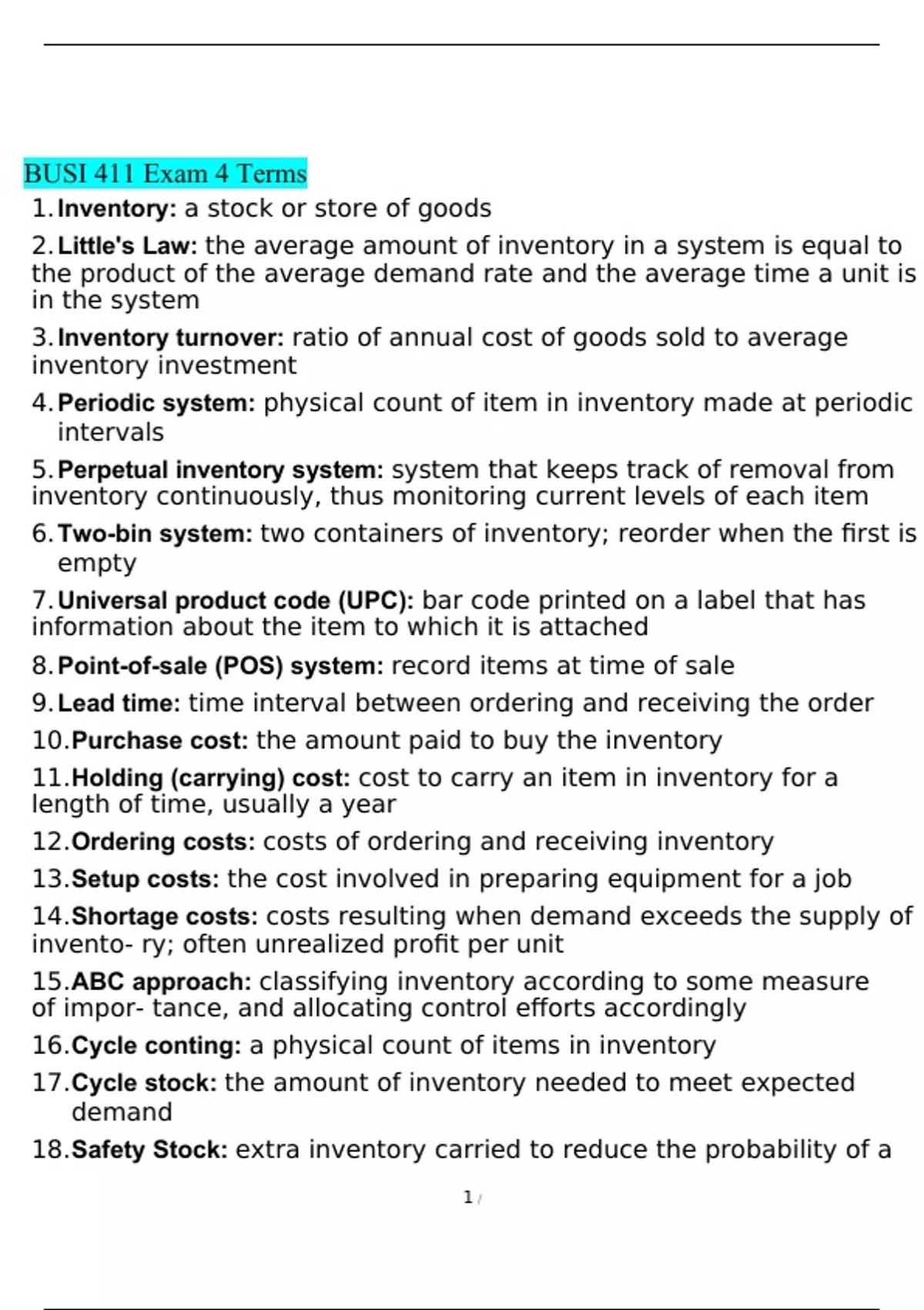 busi 411 exam 4 and answers operations management