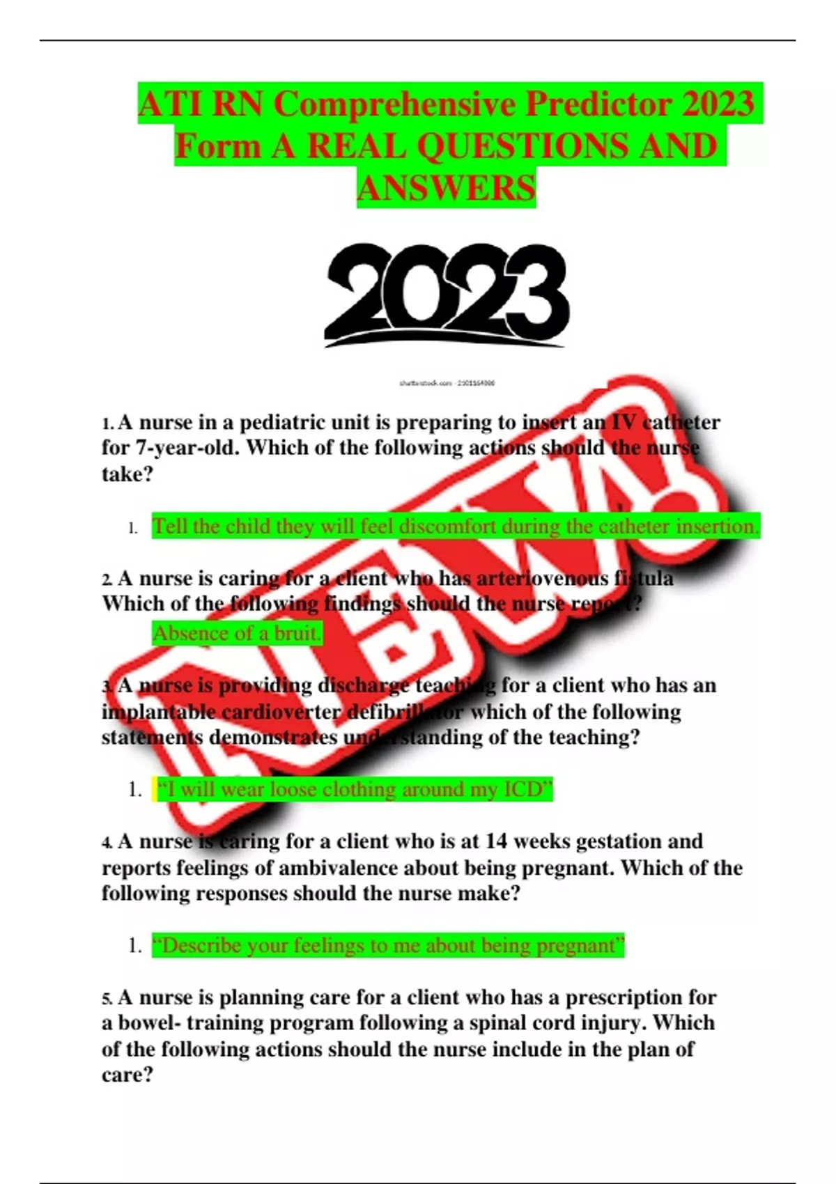 - ATI RN Comprehensive Predictor 2023 Form A REAL