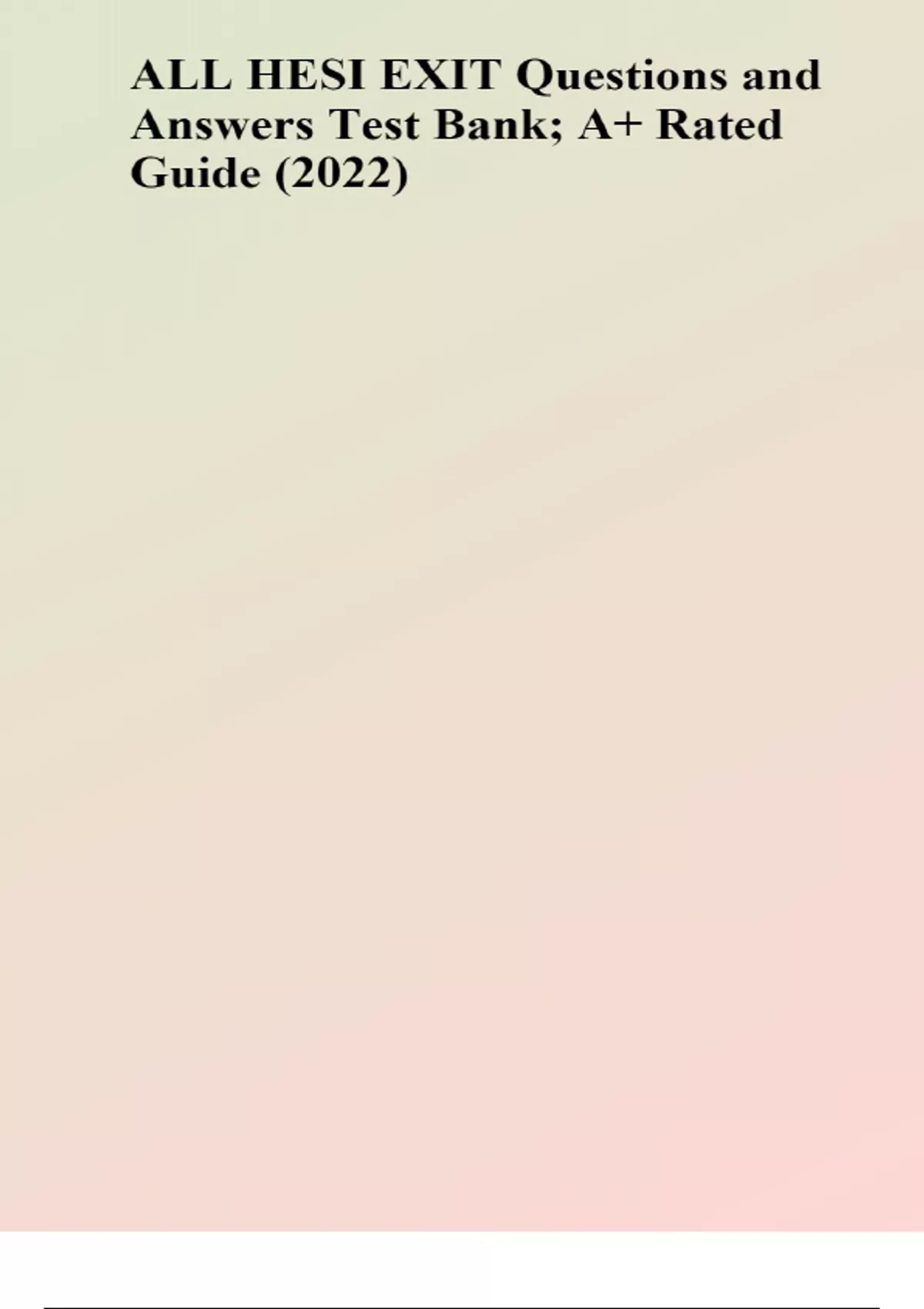 ALL HESI EXIT Questions and Answers Test Bank; A+ Rated Guide (2022) USE (CTRL + F) to search you question (answered) This is the ultimate Distinction exam Help ever !!