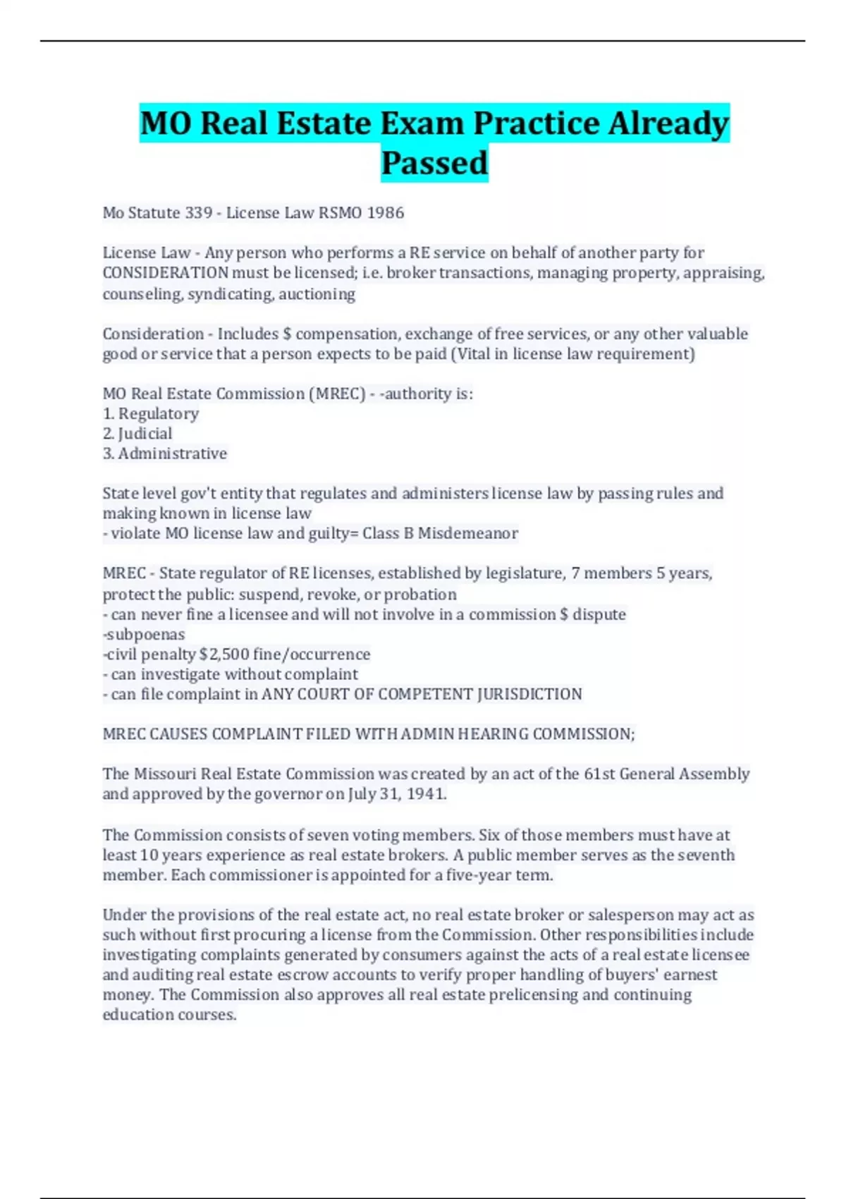 MISSOURI REAL ESTATE EXAMS PACKAGE DEAL