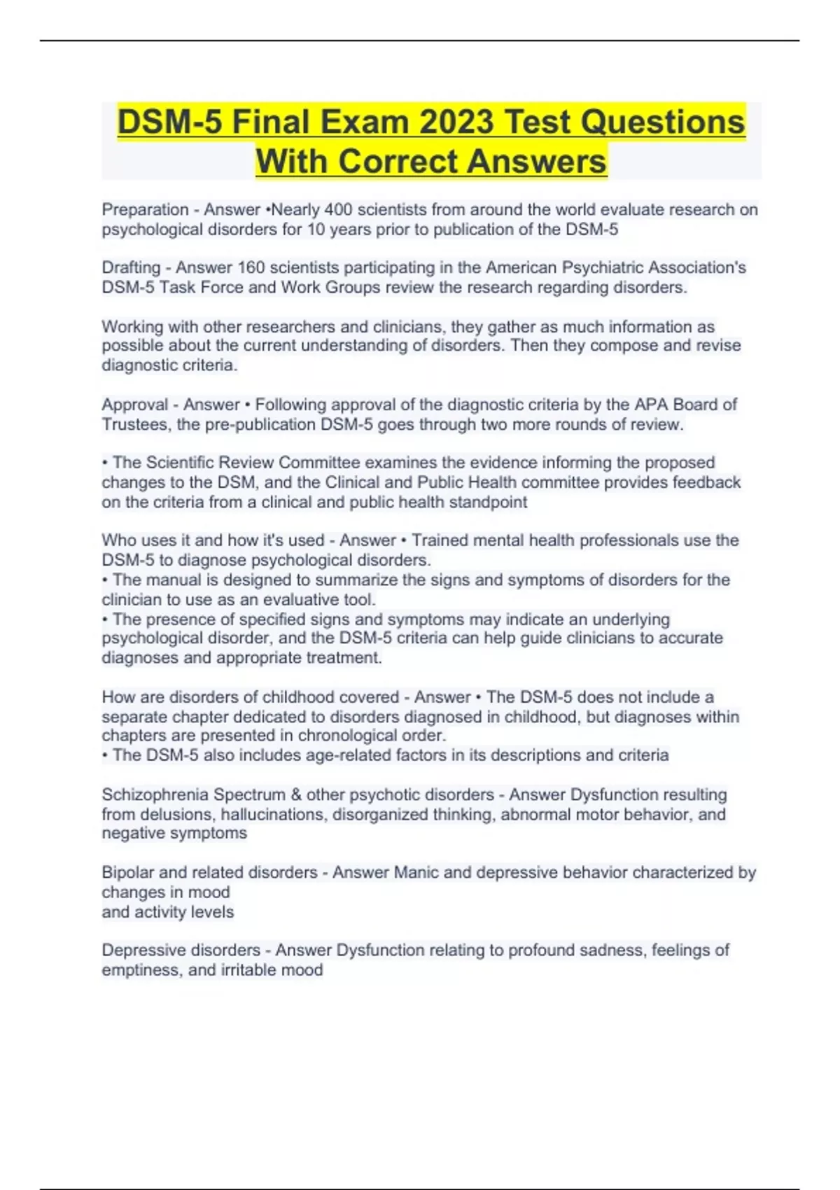 DSM-5 Final Exam 2023 Test Questions With Correct Answers