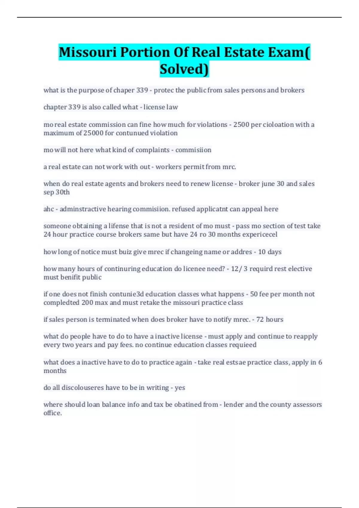 Missouri Portion Of Real Estate Exam( Solved)