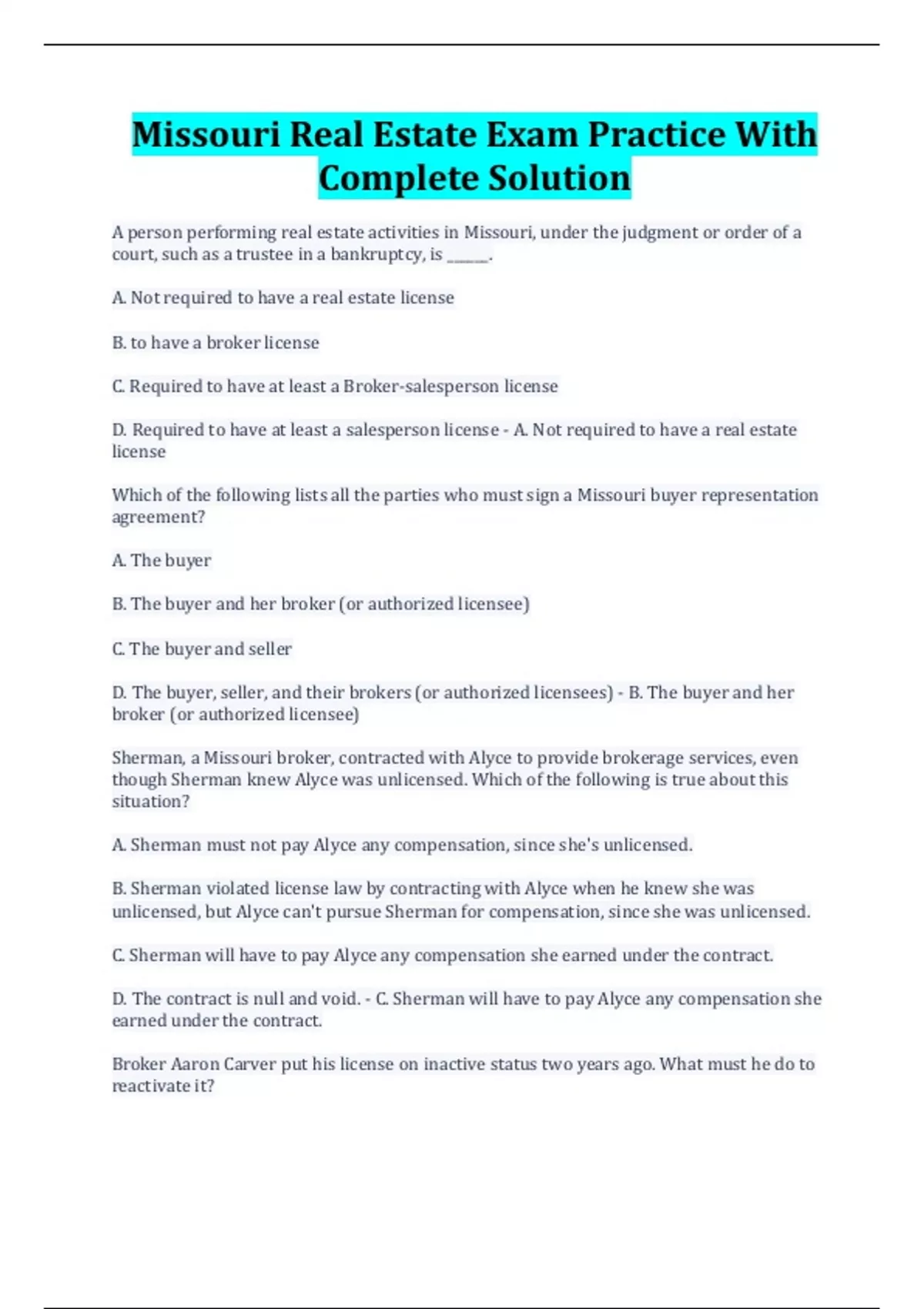 MISSOURI REAL ESTATE EXAMS PACKAGE DEAL