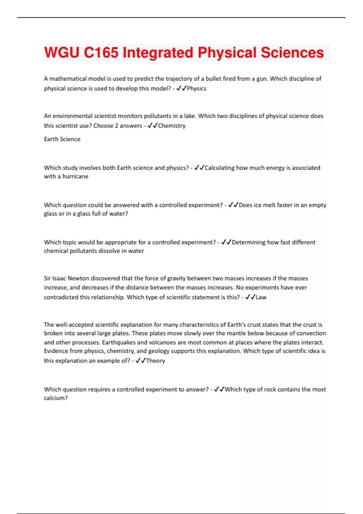 WGU C165 Integrated Physical Sciences | 243 Questions and Answers with complete solution | 2023 latest
