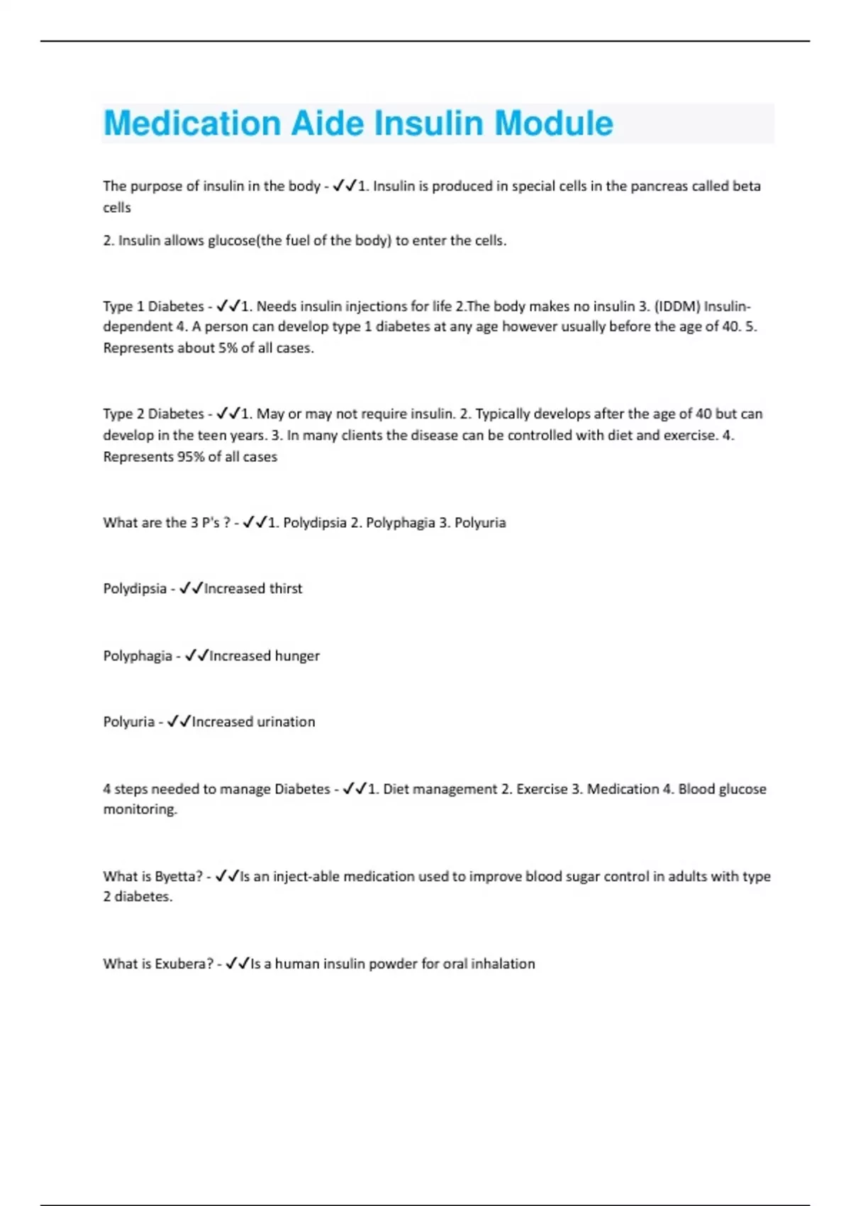 Medication Aide Insulin Module | Questions and Answers with complete solution | 2023 latest