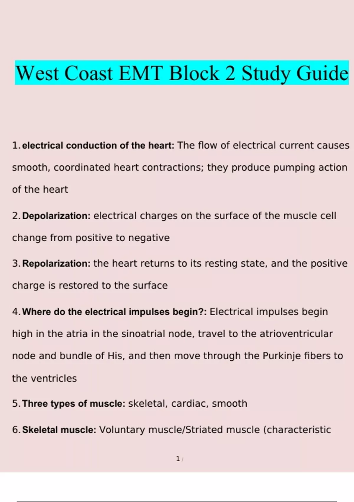 West Coast EMT Block 2 Study Guide verified with 100% correct