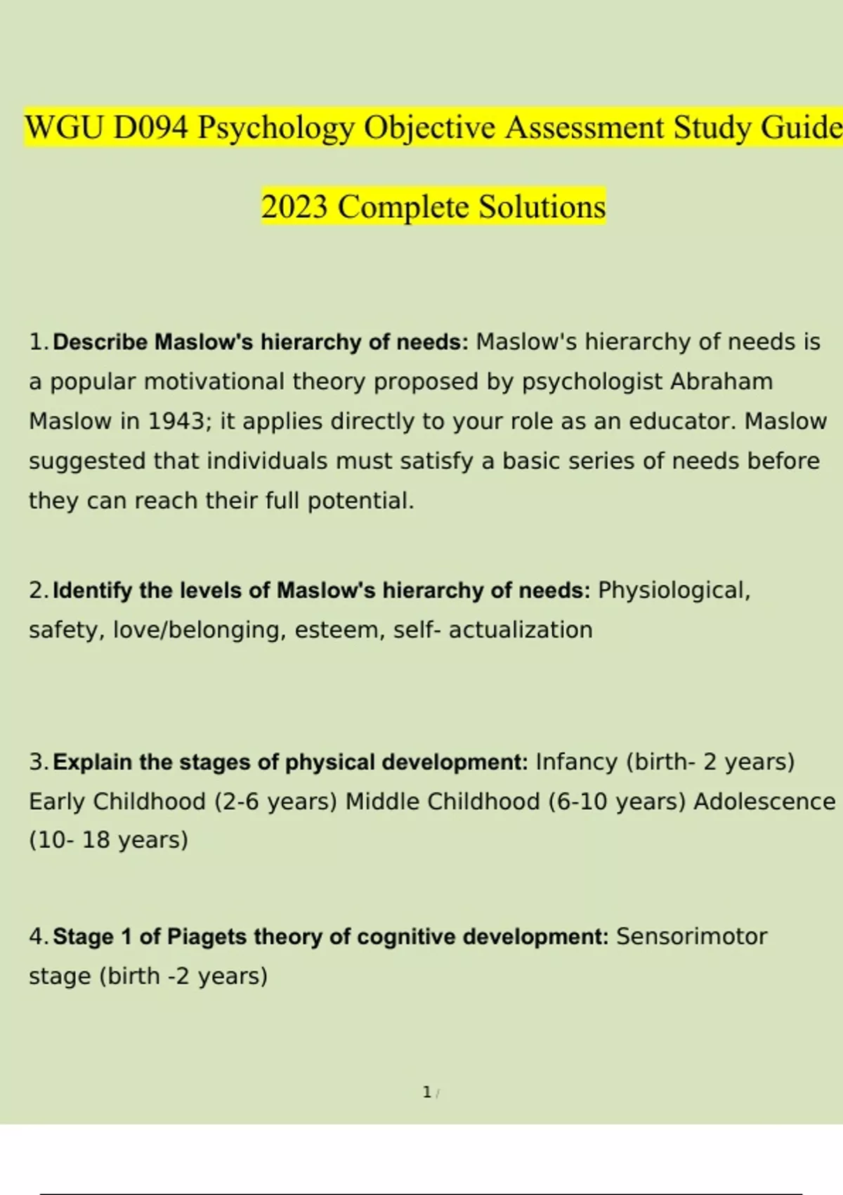 WGU D094 Psychology Objective Assessment Study Guide 2023 Complete Solutions WGU D094 Psychology Objective Assessment Study Guide 2023 Complete Solutions