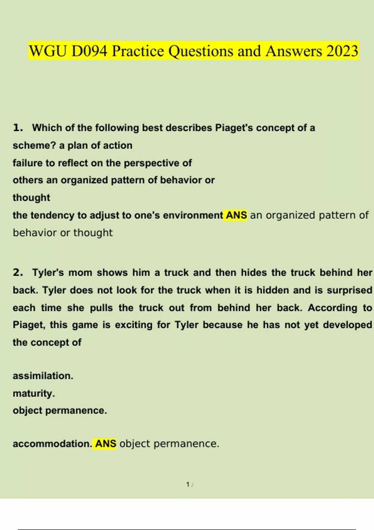 WGU D094 Practice Questions and Answers 2023 (100% Verified Answers by Expert)