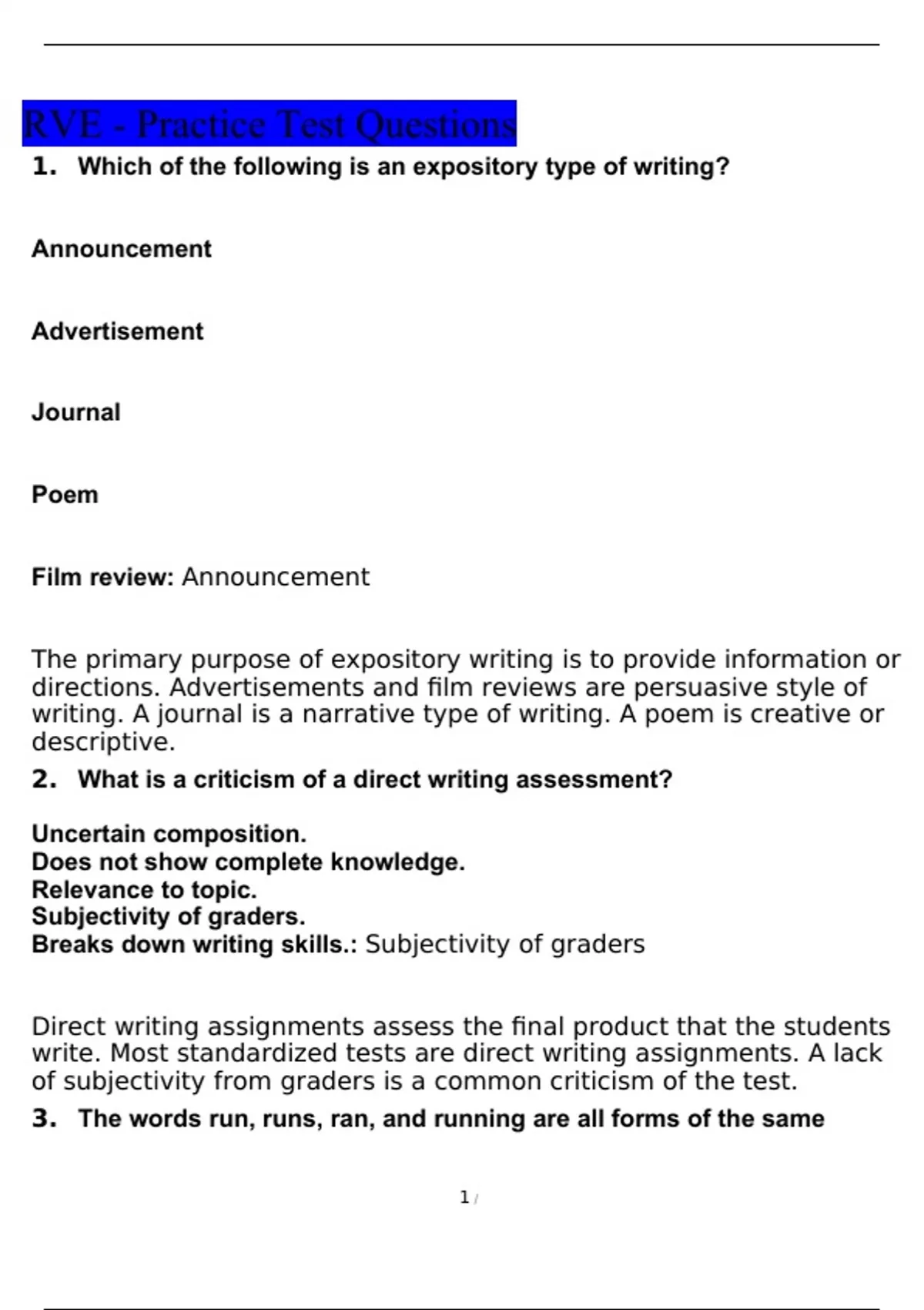 RVE - Practice Test Questions and Answers 2022 with complete solution