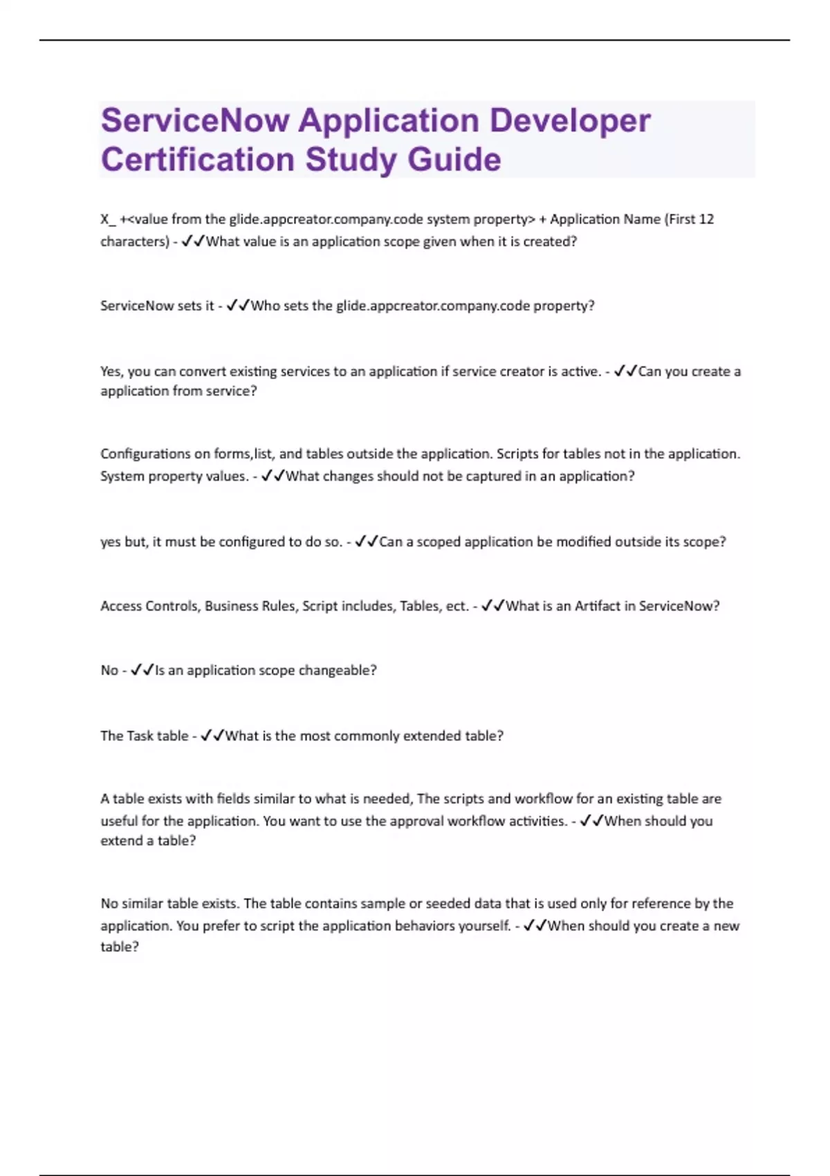 ServiceNow Application Developer Certification Study Guide | Questions and Answers with complete solution