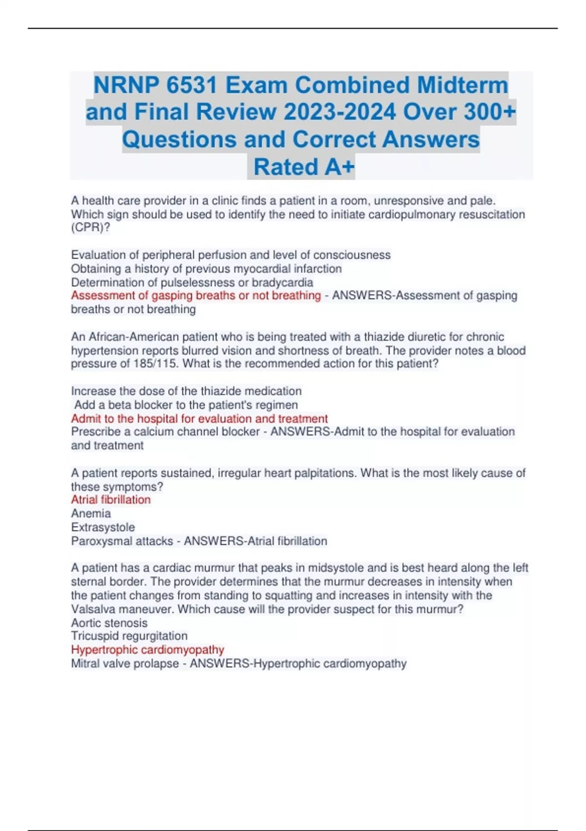 NRNP 6531 Exam Combined Midterm and Final Review Over 300+ Questions and Correct Answers Rated A+