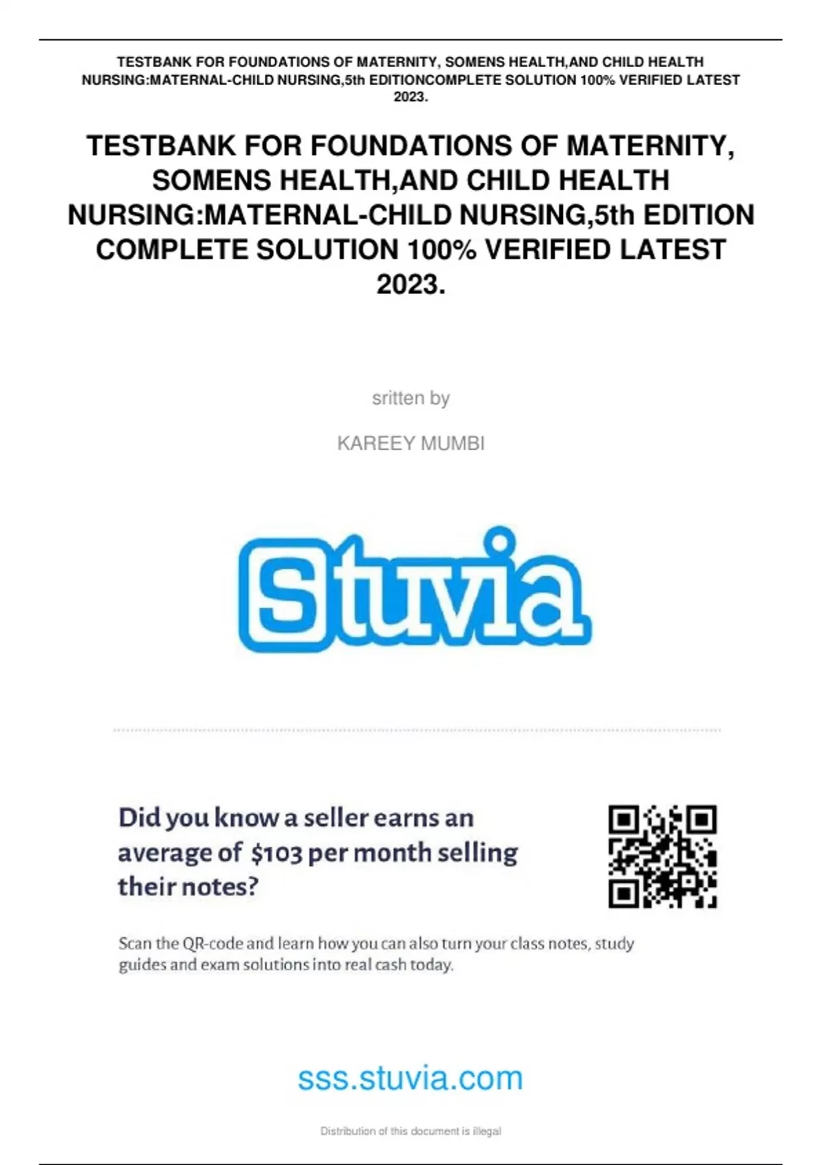 NURSING:MATERNAL-CHILD NURSING,5th EDITIONCOMPLETE SOLUTION 100% VERIFIED LATEST