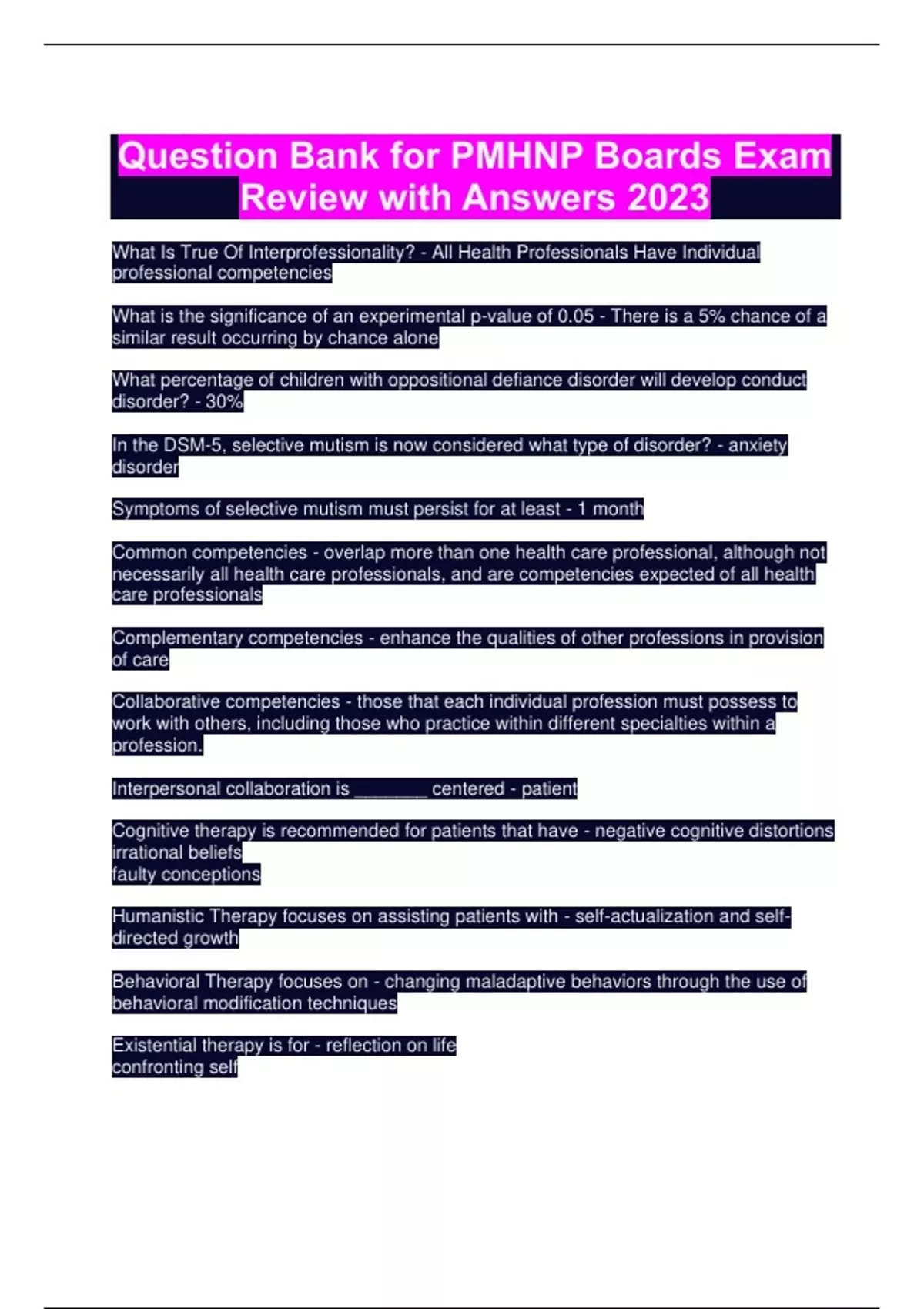 Question Bank for PMHNP Boards Exam Review with Answers 2023