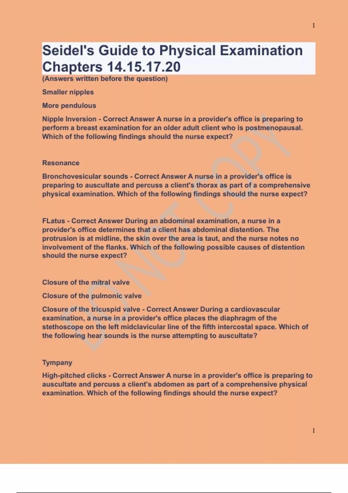 Seidel's Guide to Physical Examination Chapters 14.15.17.20