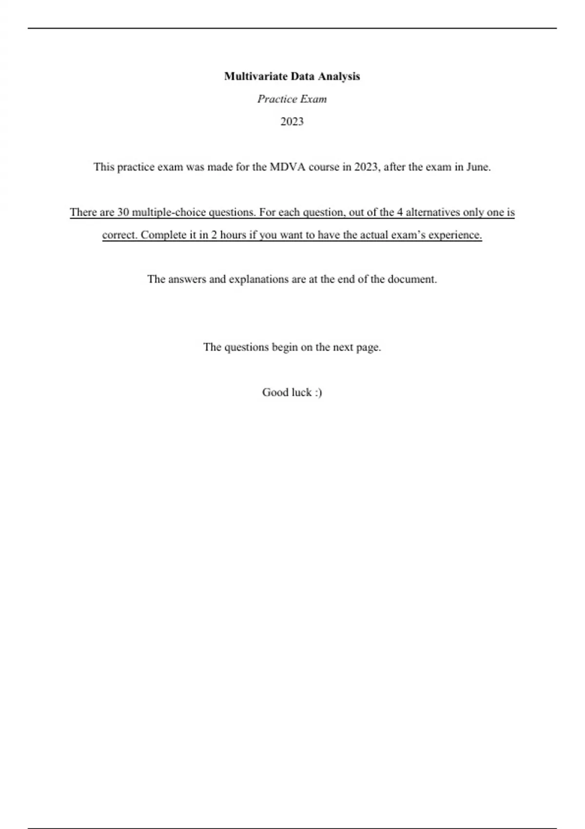 This practice exam was made for the MDVA course in 2023, after the exam in June.