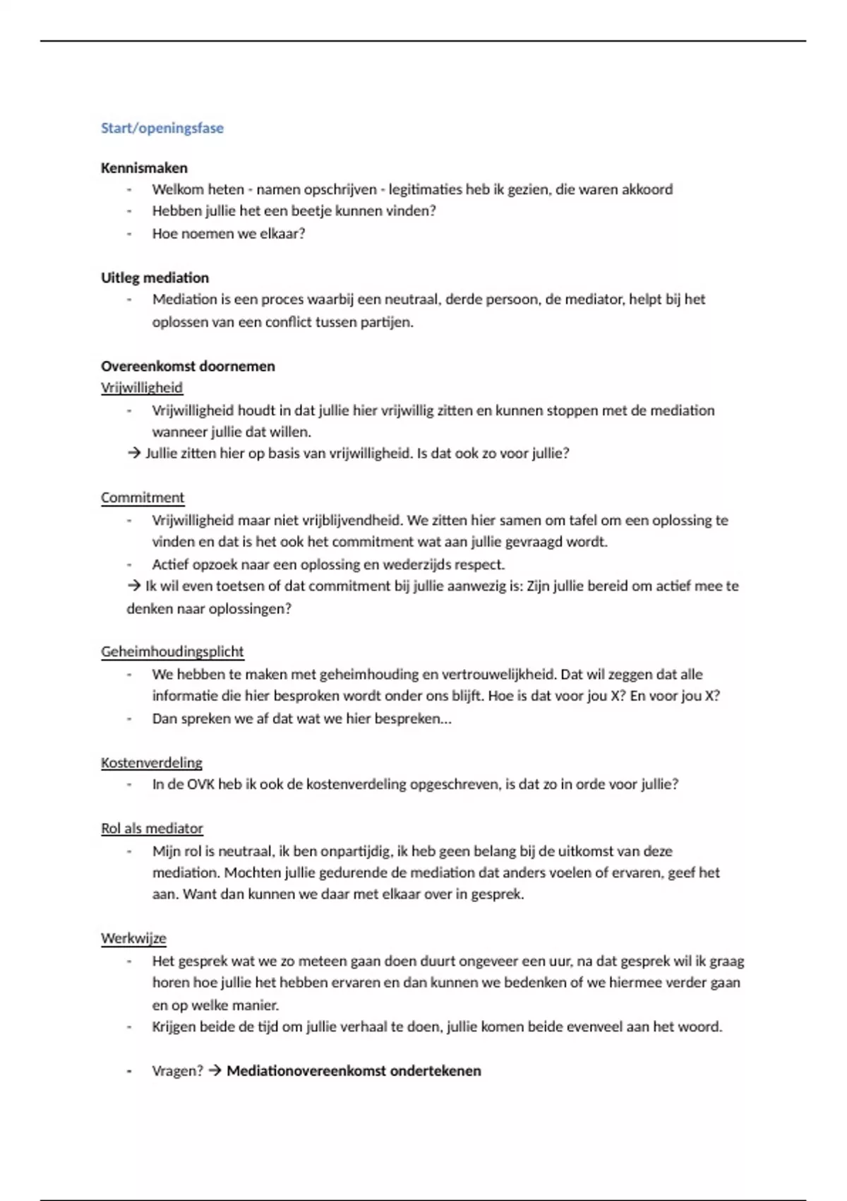 - Vrijwilligheid houdt in dat jullie hier vrijwillig zitten en kunnen stoppen met de mediation