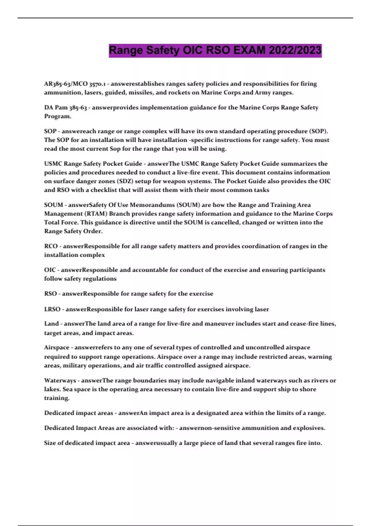 range safety oic rso exam 2022 with complete solut