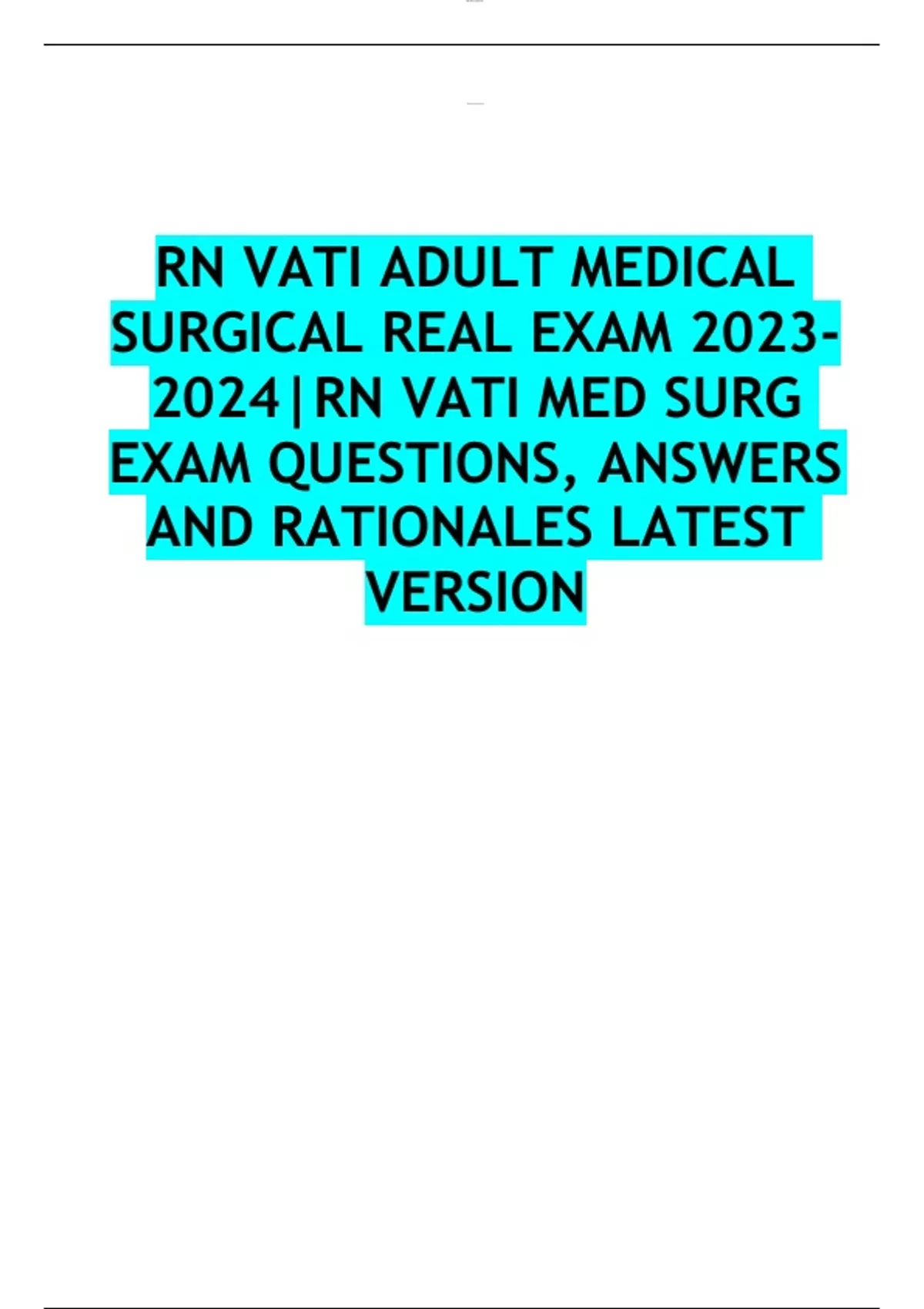 RN VATI ADULT MEDICAL SURGICAL REAL EXAM |RN VATI MED SURG EXAM QUESTIONS, ANSWERS AND RATIONALES LATEST VERSION
