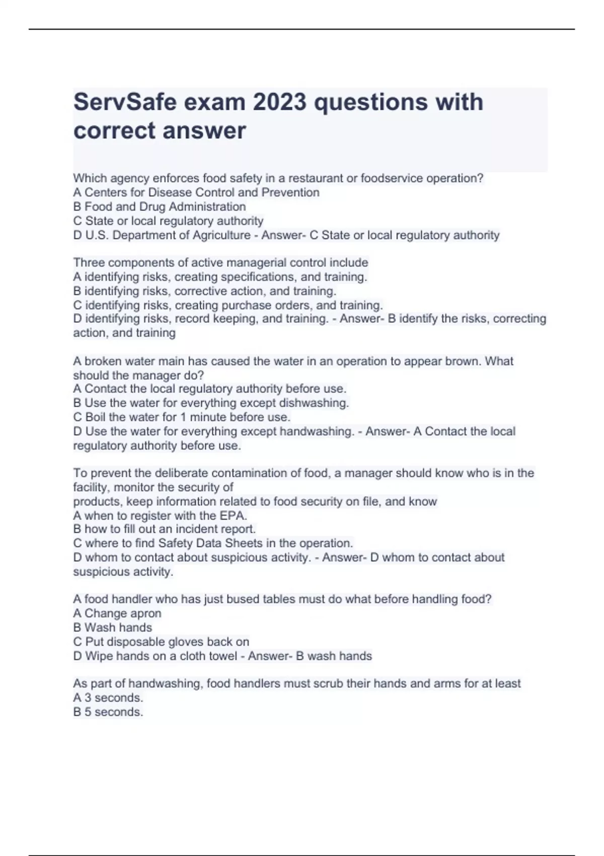 ServSafe exam 2023 questions with correct answer