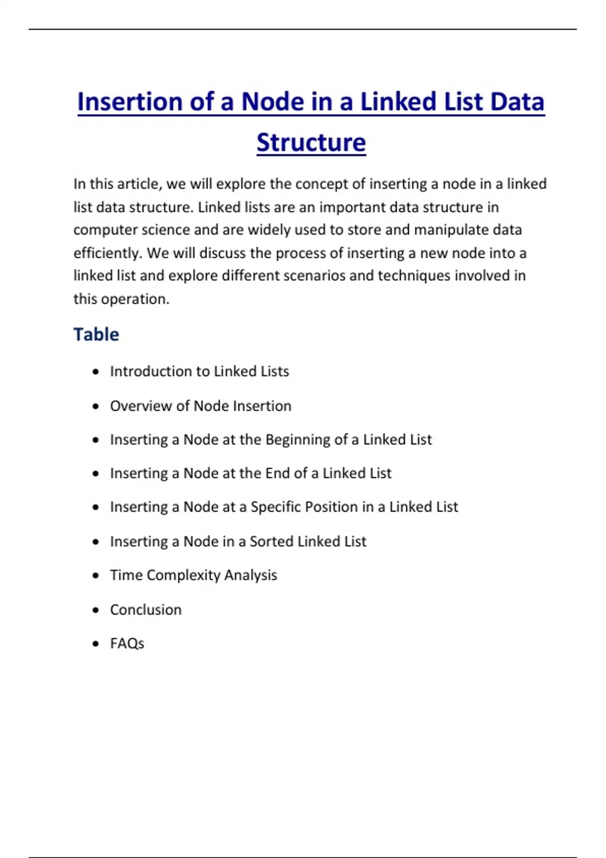 In this article, we will explore the concept of inserting a node in a linked
