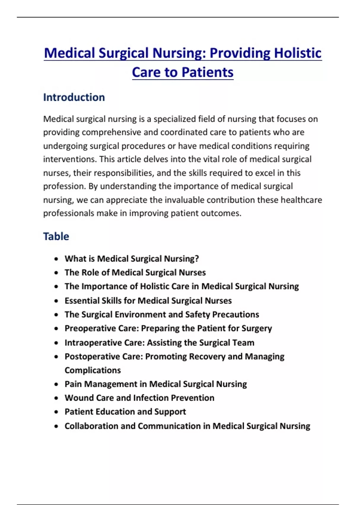Summary Medical Surgical Nursing: Providing Holistic Care to Patients