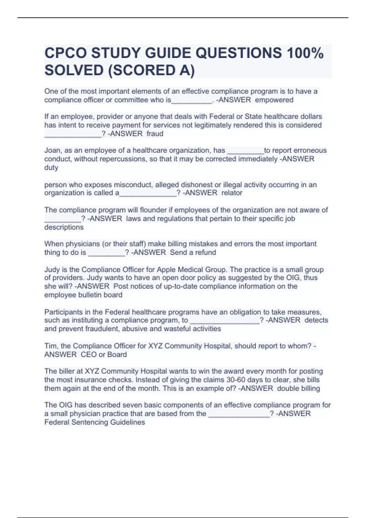 CPCO STUDY GUIDE QUESTIONS 100% SOLVED (SCORED A)