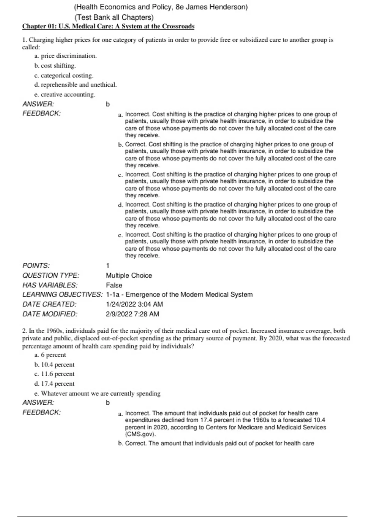 b. Correct. Cost shifting is the practice of charging higher prices to one group of