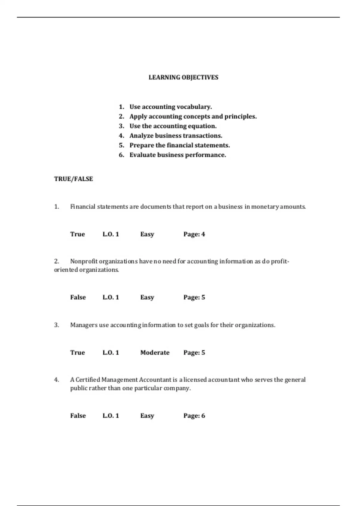 False L.O. 1 Easy Page: 6