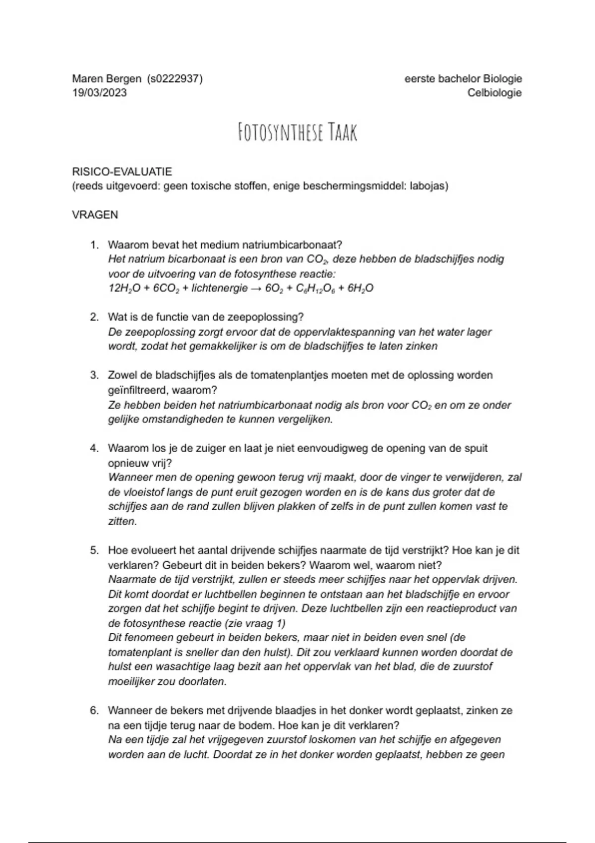Maren Bergen (s0222937) eerste bachelor Biologie
