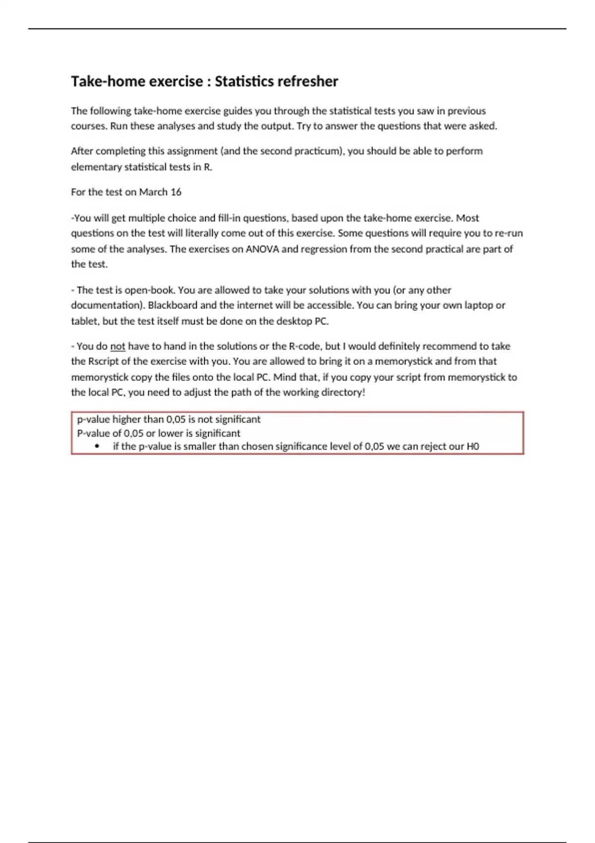 the Rscript of the exercise with you. You are allowed to bring it on a memorystick and from that