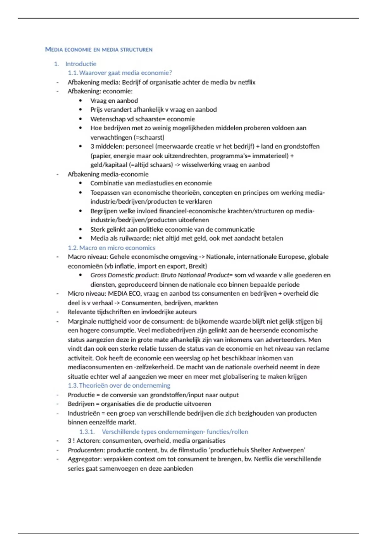 MEDIA ECONOMIE EN MEDIA STRUCTUREN