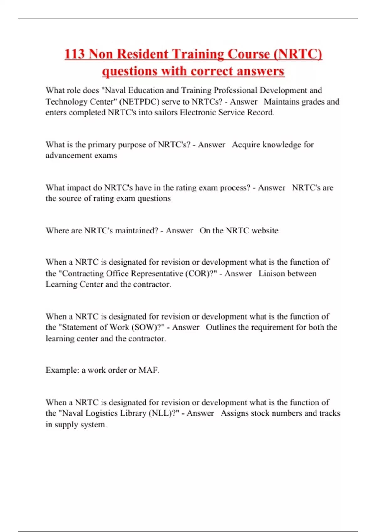 113 Non Resident Training Course (NRTC) questions with correct answers