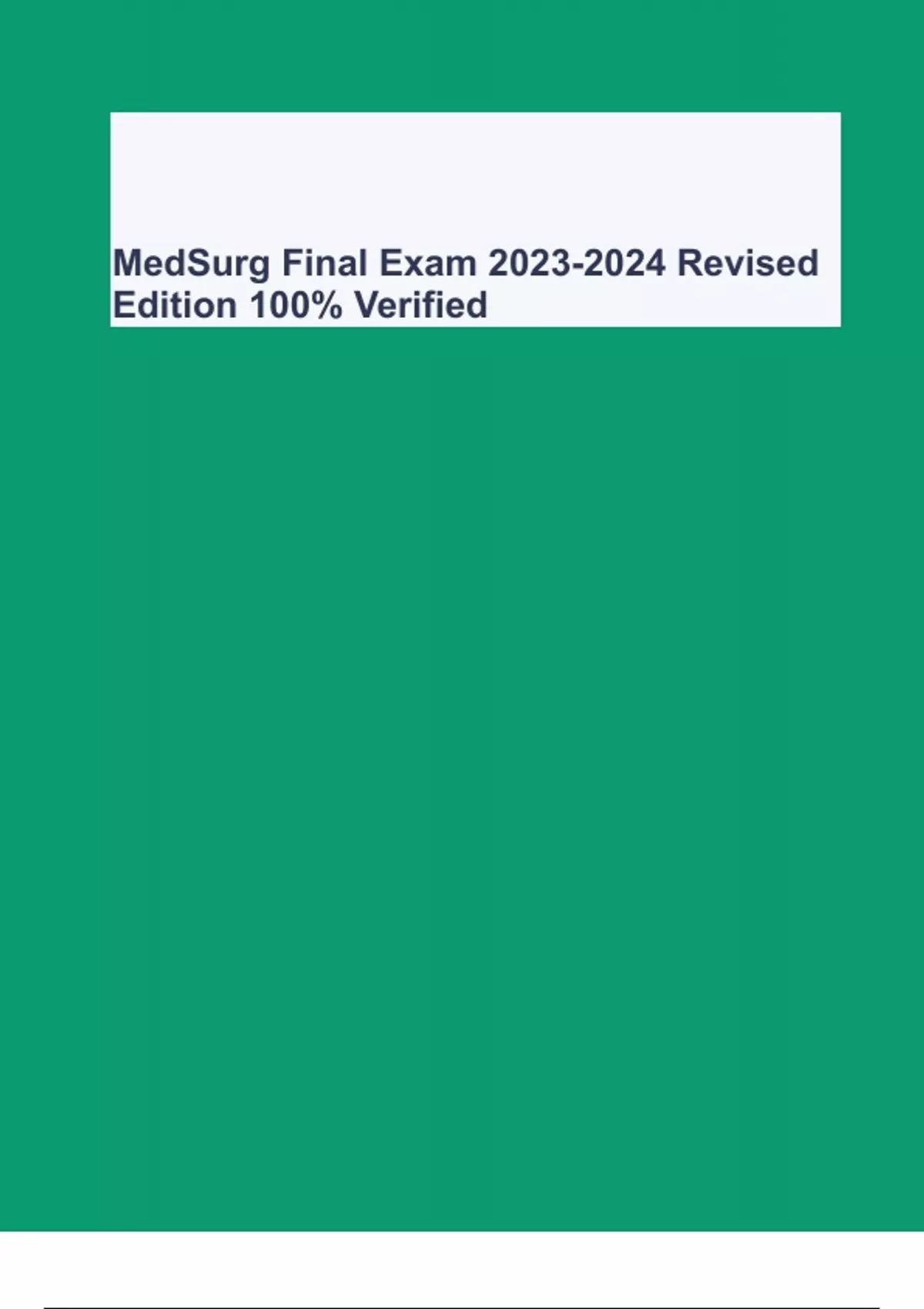 MedSurg Final Exam Revised Edition 100% Verified