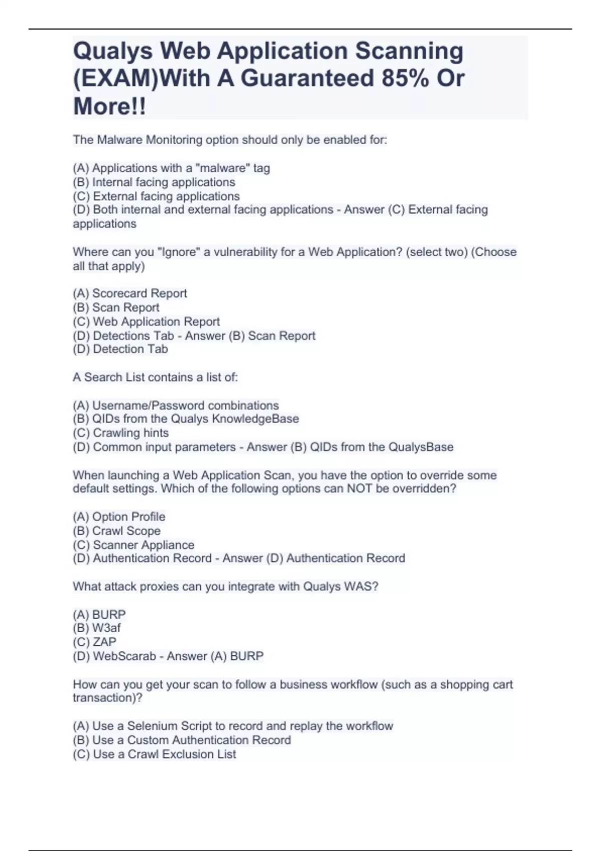Qualys Web Application Scanning (EXAM)With A Guaranteed 85% Or More!!