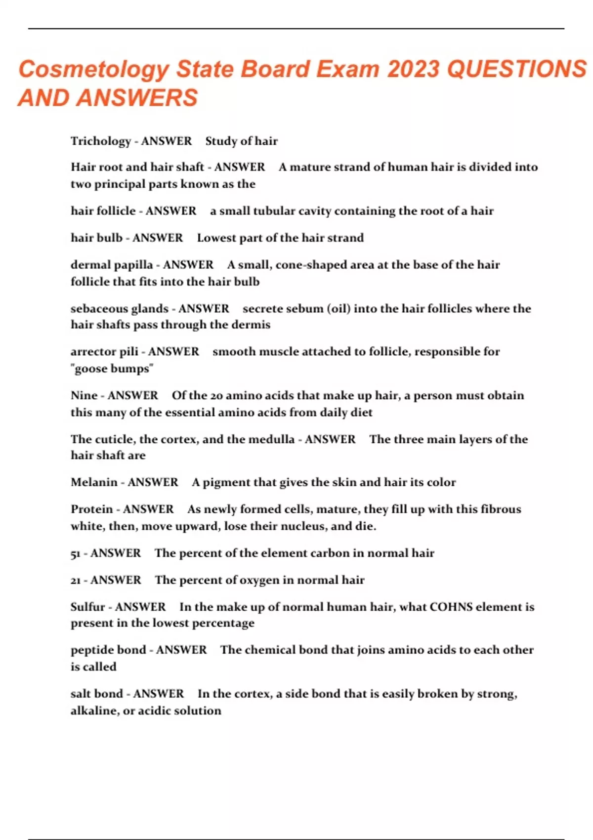Cosmetology State Board Exam 2023 QUESTIONS AND ANSWERS
