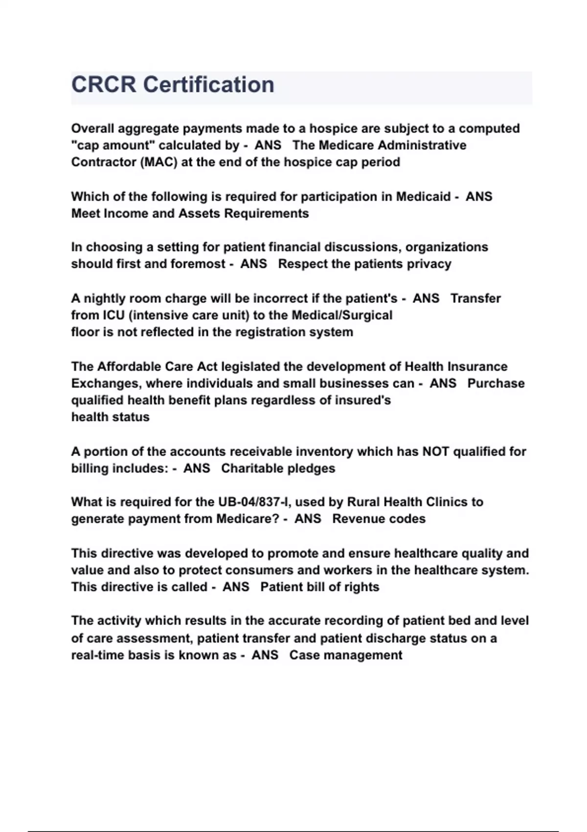 CRCR Certification QUESTIONS & ANSWERS 2023 ( A+ GRADED 100% VERIFIED)