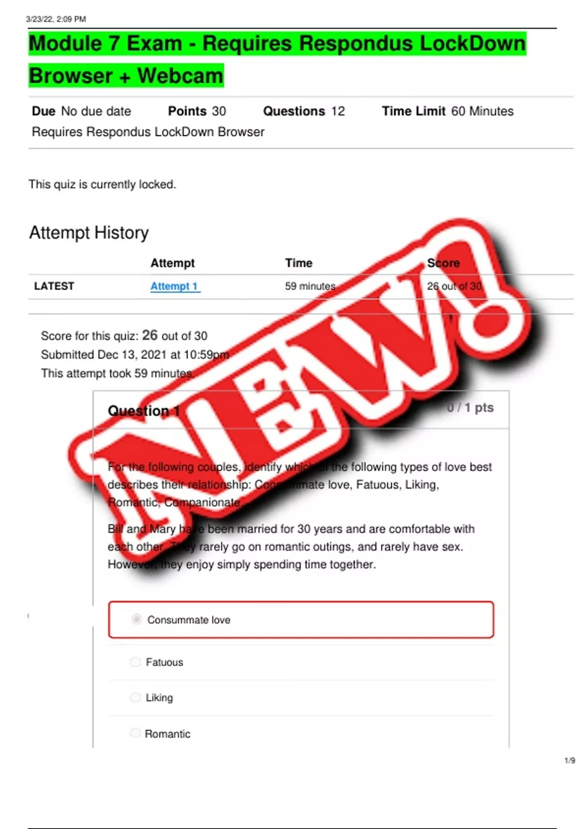 Module 7 Exam - Requires Respondus LockDown Browser + Webcam