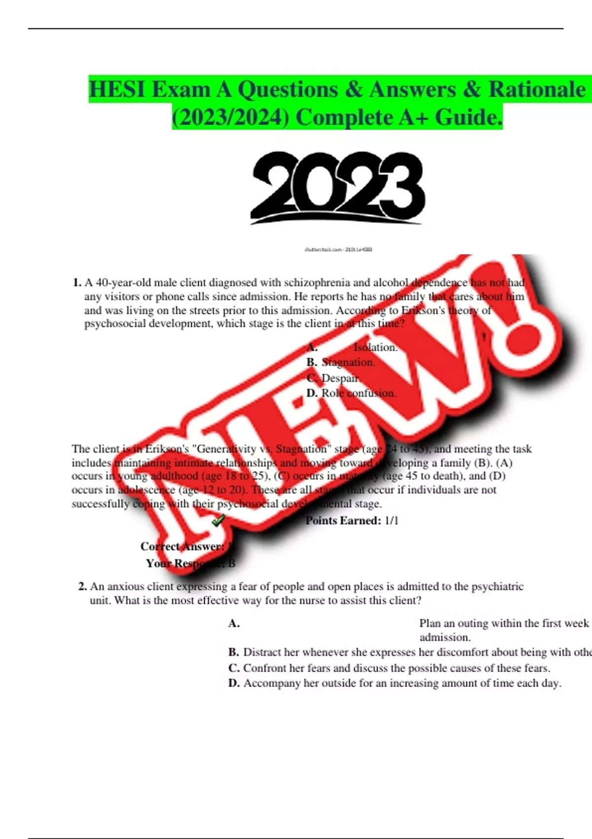 HESI Exam A Questions & Answers & Rationale (2023/2024) Complete A+ Guide