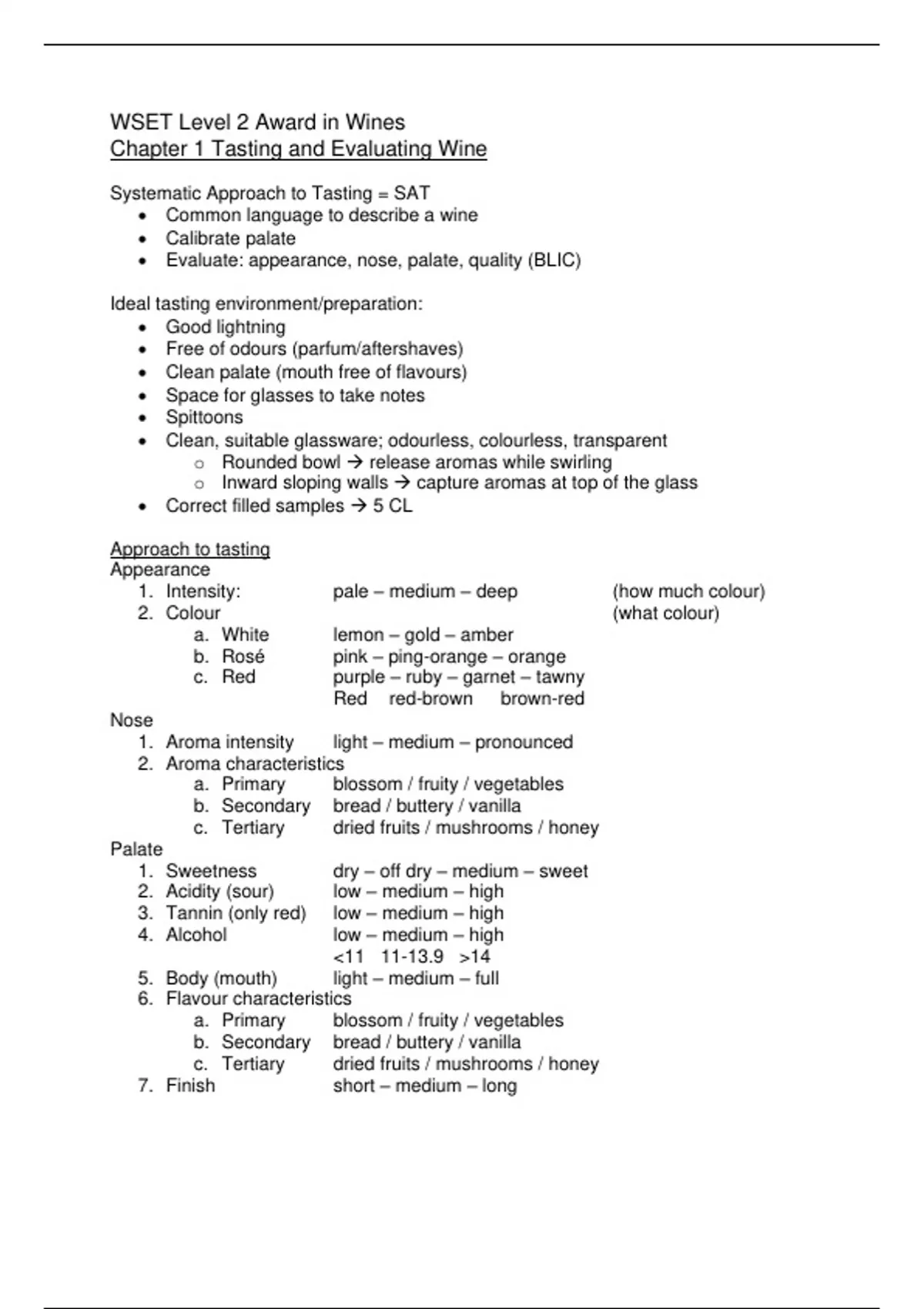1. Sweetness dry – off dry – medium – sweet