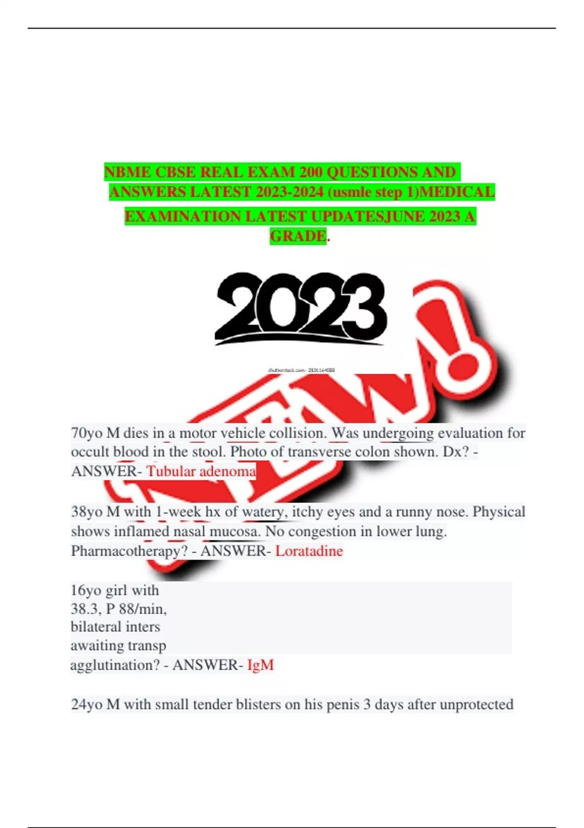 NBME CBSE REAL EXAM 200 QUESTIONS AND ANSWERS LATEST (usmle step 1)MEDICAL EXAMINATION LATEST UPDATESJUNE 2023 A GRADE.