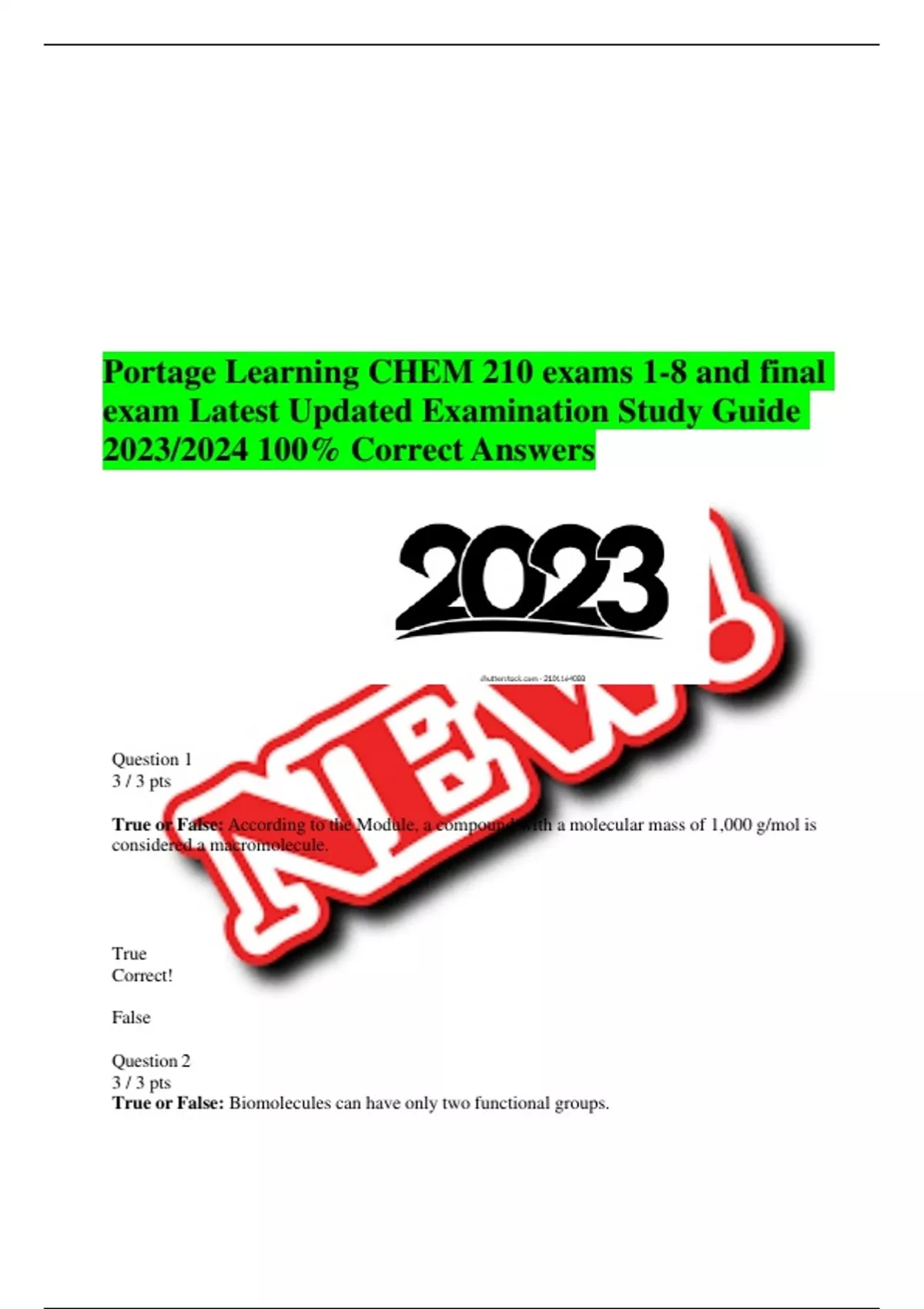 Portage Learning CHEM 210 exams 1-8 and final exam Latest Updated Examination Study Guide 2023/2024 100% Correct Answers
