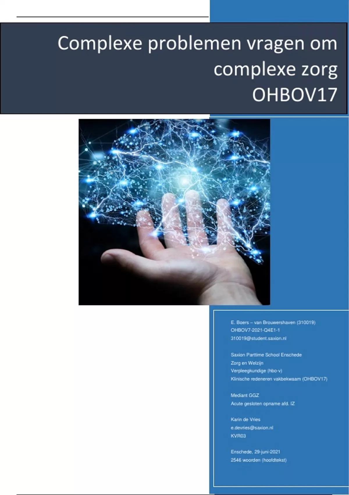 om klinische te redeneren bij een hoogcomplexe casuïstiek van een cliënte op de gesloten