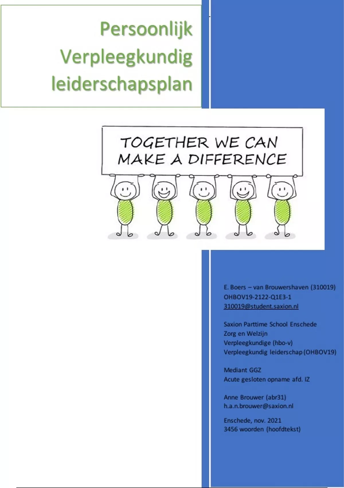 Voor u ligt mijn persoonlijk verpleegkundig leiderschapsplan, waarin ik verschillende