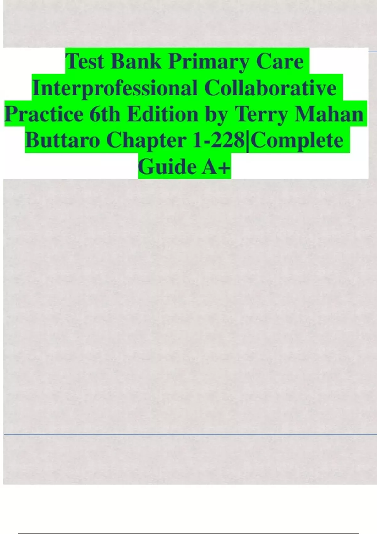 Test Bank Primary Care Interprofessional Collaborative Practice 6th Edition by Terry Mahan Buttaro Chapter 1-228|Complete Guide A+